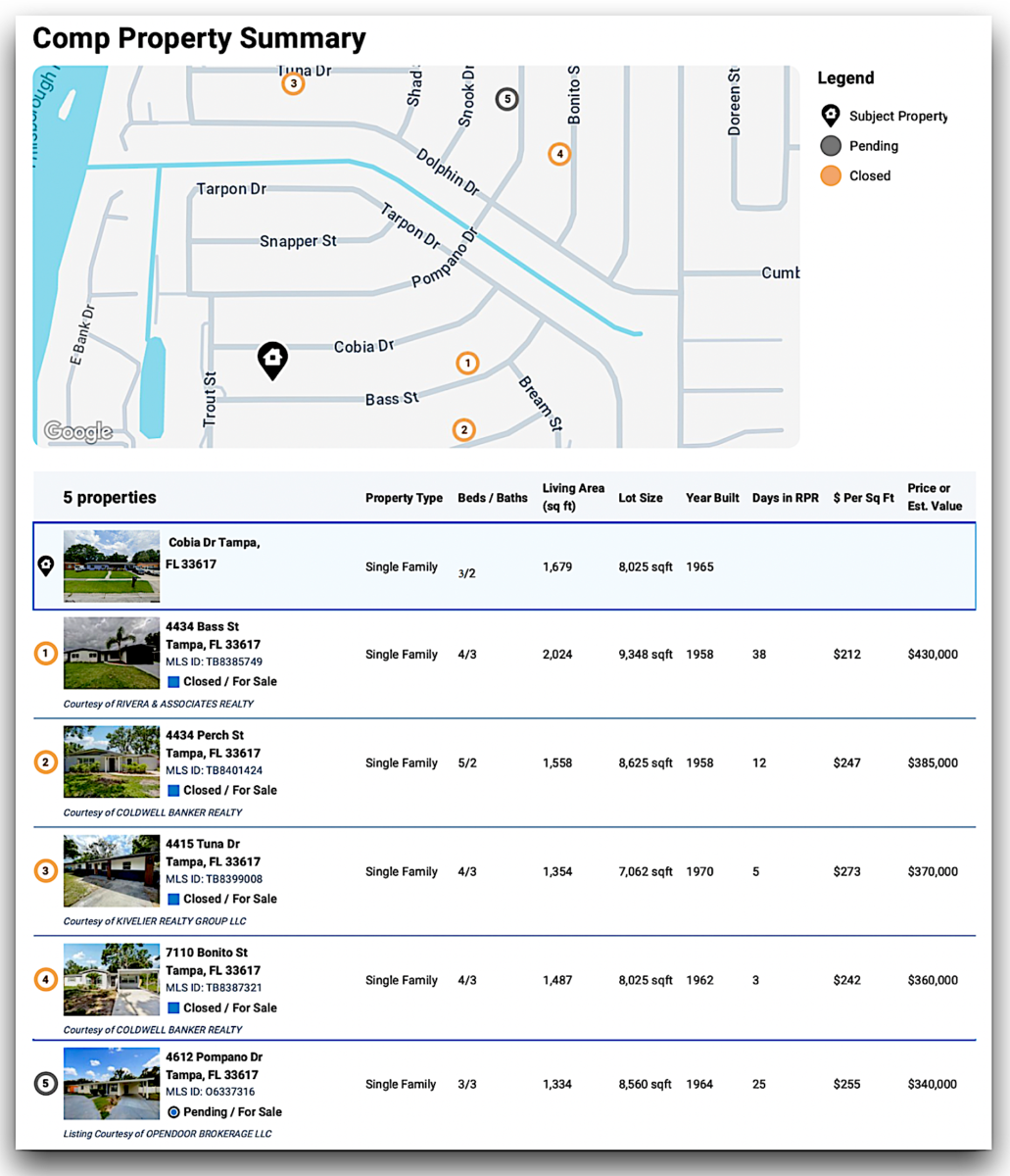 4612 Pompano Dr β 1,334 sf β $340K (pending 3/3) β $255/sf